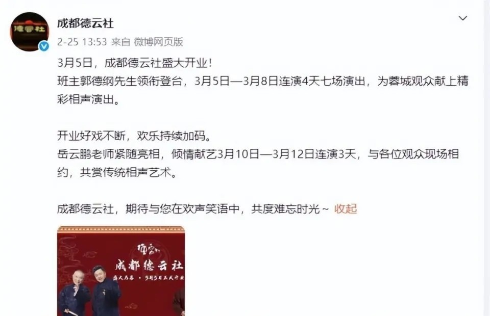 3月5日,德云社西南首店在成都正式揭幕,大门敞开,迎八方来客。